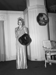 A selection of evening fashion is featured from different Fort Worth stores as there is preparation for varied beauty next month at the Assembly ball and Steeplechase ball. Style-show model Mary Chesney is wearing a gold lame classic dress, worn with a jewel-set muff. Published in the Fort Worth Star-Telegram morning edition, October 27, 1940.