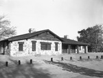 Lake Fannin and Lake Davey Crockett in the north portion of Fannin County and about 15 miles from Bonham, are beauty spots with recreational facilities that have grown in popularity. Lake Fannin covers about 53 acres of land and Lake Davey Crockett about 450 acres. Both are open for fishing, boating, and swimming and accommodations for guests. Both lakes are in the Northeast Texas Land Utilization Project established by the Soil Conservation Service. In this picture is the Main lodge at Lake Fannin. It is a one story building with two chimneys and several windows and entrance doors. There are big trees in the backyard. Published in the Fort Worth Star-Telegram.