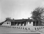 Lake Fannin and Lake Davey Crockett in the north portion of Fannin County and about 15 miles from Bonham, are beauty spots with recreational facilities that have grown in popularity. Lake Fannin covers about 53 acres of land and Lake Davey Crockett about 450 acres. Both are open for fishing, boating, and swimming and accommodations for guests. Both lakes are in the Northeast Texas Land Utilization Project established by the Soil Conservation Service. In this picture is the Main lodge at Lake Davey Crockett. It is a one story building with two chimneys, several windows and entrance doors. There are some big tree in the backyard. Published in the Fort Worth Star-Telegram.