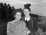 J. P. Osborne Hereford Cattle Sale attendees Miss Aliene Tate, left, and Mrs. Glenn Hopkins, both of Amarillo, Texas. Mrs. Hopkins is a member of a pioneer West Texas ranch family. Published in The Fort Worth Star-Telegram Morning Edition November 04, 1940.
