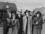 J. P. Osborne Hereford Cattle Sale attendees (left to right) Mason King, Amarillo, Mrs. E. B. Meyer of Amarillo, George Vance of Canyon, Mr. and Mrs. Bud Minor of Canyon, and Mrs. George Nance. Published in The Fort Worth Star-Telegram Morning Edition November 04, 1940.