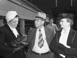 J. P. Osborne Hereford Cattle Sale attendees (left to right) Mrs. J. P. Osborne Sr. of Miami, Texas and Mr. and Mrs. G. P. Mitcham of Cisco, Texas. The three individuals are shown having a conversation. Published in The Fort Worth Star-Telegram Morning Edition November 04, 1940.