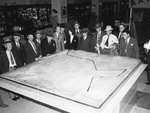 A group of people standing around the nine-foot relief map model of the proposed Big Bend National Park.