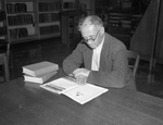 Fort Worth Public Library patron, Charles Lambert of New York, peruses a magazine on Texas while sitting at a library table. Published Fort Worth Star-Telegram Morning Edition November 10, 1940.