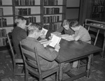 Four boys are absorbed in some of the books and magazines found in the Fort Worth Public Library's juvenile department. The two facing the camera are Donald Earl Rodstrum and Tommy Quinn, The other two are brothers Dean Knight, left, and Billy Knight. Published Fort Worth Star-Telegram Morning Edition November 10, 1940.
