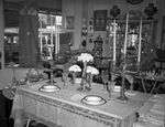 Thanksgiving table settings. Example of formal table settings showing fine linens and heirloom silver are demonstrated as a Thanksgiving suggestion for persons who believe that the beauty of a table is half the pleasure of a fine dinner. China, silver and crystal are seen to be equally as effective as appointments, while the background of all table setting is the handsome cloth to set off the china and silver. Published in Fort Worth Star-Telegram, morning edition, November 17, 1940.