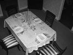 Thanksgiving table settings. Example of formal table settings showing fine linens and heirloom silver are demonstrated as a Thanksgiving suggestion for persons who believe that the beauty of a table is half the pleasure of a fine dinner. China, silver and crystal are seen to be equally as effective as appointments, while the background of all table setting is the handsome cloth to set off the china and silver. Published in Fort Worth Star-Telegram, morning edition, November 17, 1940.