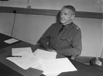 Major (Maj.) R. E. Froiseth, Army Constructing Quartermaster in Abilene, Texas is pictured here. He is shown seated at his desk with papers on top of the table. He is dressed in military uniform. Published in the Fort Worth Star-Telegram, morning edition, December 22, 1940.