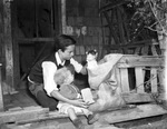 Thirteen year old boy and his baby brother look at a doll out of the stocking the Star-Telegram Goodfellows delivered. The baby is sitting on the porch steps while big brother kneels behind him. Published in the Fort Worth Star-Telegram morning edition, December 24, 1940.