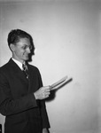 H. A. Soucy, treasurer of the Footlite Club, holding check for $50.00 which the club turned over to the Star-Telegram Goodfellows as its contribution. Published in the Fort Worth Star-Telegram, evening edition, December 26, 1940.