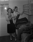 Camp Bowie, Brownwood, Texas, nurses; Margaret East of Fort Worth (left) and Helen Painter of Harlan, Kentucky, examine the mail box in the nurses' mess hall, 03/1941