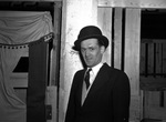 Billy Rowan, trainer and rider of "Midnight Star", seen standing in a room in in a suit and hat at the Southwestern Exposition and Fat Stock Show. Midnight Star won the $1,000 five-gaited championship.