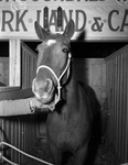 Parade of champion breeding horses at the Southwestern Exposition and Fat Stock Show. Champion thoroughbred Mare, "Lady," of Pitchfork Land and Cattle Corporation, Guthrie, Texas.