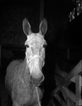 Parade of champion breeding horses at the Southwestern Exposition and Fat Stock Show. Champion mule shown with its ears perked straight up.