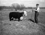 A scene from Midwest Livestock Show & Exposition Sweetwater. "General Advance," young bull, first in his class is shown in the picture.