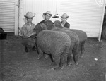 Left to right, Lloyd Rumsey, Miles; Wallace Rumsey, Miles; and Billie Richards, with the prize sheep in Midwest Livestock Show & Exposition, Sweetwater.