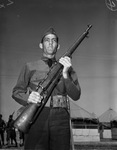 Private Johnny Puckett formerly played basketball at Sam Houston State Colllege; now in the Army at Camp Bowie, Brownwood, Texas, 04/1941