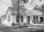 This clapboard dwelling recently was completed at 1317 Blue Bonnet Drive for Mr. and Mrs. Cecil Brower. The porch has an iron railing. In the front yard is a tall tree.