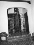 The scroll iron gateway from the entrance hall to the living room of the new Spanish home of Doctor and Mrs. X. R. Hyde. Brick steps lead up to the gate. Plans and ideas for distinctive homes will be a feature of the Star-Telegram Third Annual Home Show opening May 4 in the Will Rogers Memorial Coliseum.