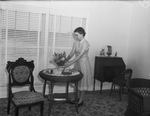 Hoggett, Hans (Mrs.); Chairs; Furniture; Flowers; Vases; Living rooms; Houses; Ranches; Hoggett, Hans