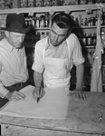 Thalia Pool in Foard County. C. C. Wheeler, left, and Loyd Fox, looking at map. Published in Fort Worth Star-Telegram, morning edition, May 18, 1941.