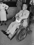 Willie Hoare, Chicago professional golfer views the U. S. Golf Association Open tournament from a wheel chair.