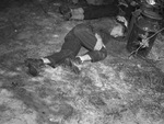 Sergeant Sam E. Ragland, of San Antonio, Texas, Company A of the 141st Infantry, sleeping on the ground near a couple of water containers. He is resting after a participating in a week of Army maneuvers at Camp Bowie. An unidentified solider is lying on the ground in the background.