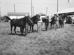 American Quartermaster Show at Stamford, Texas. Winners in the aged stallion class, left to right, "Dexter," owned by Jess L. Hankins, "Jokers Joe," owned by B. E. Brooks of San Angelo, Texas; "Red Jacket," owned by LeRoy owned by the King Ranch of Kingsville, Texas.