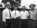 Texas Hereford Breeders Association tour. Left to right, S. C. Ballard of Neches, J. D. Martin of Neches, M. A. Davey Junior of Palestine and R. R. Childs of Jacksonville.