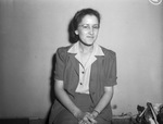 Midland, Texas, is hosting their seventh annual rodeo. Working hard for its success is Miss Ophelia Greene. She is an office secretary for the Midland Chamber of Commerce. Miss Green is sitting in front of a wall, dressed in a collared blouse, blazer, and a skirt.