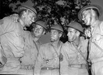 Florence, W. (Sgt.)"; William H. (Sgt.); Doss, H. A. (Sgt.); Military uniforms; Helmets; Thomas, Leroy (Sgt.); Wall, Dub (Sgt.); Military officers; Military life; Military Camps; Military maneuvers