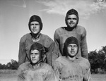 Polytechnic High School is preparing for the start of the new football season. Some of the players who will carry the brunt of the campaign this fall, left to right, on the back row are Tom Orr and James Jones. On the front at the left is Kenneth Andrews. They are on the field, dressed in practice uniforms and helmets. Published Star-Telegram Morn. Sep. 9, 1941.