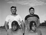 Polytechnic High School is preparing for the start of the new football season. Some of the players who will carry the brunt of the campaign this fall, left to right, on the front row are Buddy Heimer and Howard Reynolds. Two coaches are standing in the back. The players are dressed in practice uniforms and helmets. Published Star-Telegram Morn. Sep. 9, 1941.