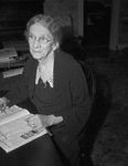Mrs. Corinne Ellen Birdsong is known as the "Mother of the First District, P. T. A." and is the lifetime historian of the organization. Few women have been active in the P. T. A. longer than she has, and none have attended more meetings, conferences, or national conventions. Mrs. Birdsong, eighty-one, currently lives with her daughter Mrs. J. C. Granville. Mrs. Birdsong is sitting at a desk, reading the newspaper. She is wearing a dark dress with lace around the collar. Published Fort Worth Star-Telegram Morning Edition September 11, 1941.