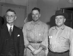 One of the busiest and biggest oil areas in the Permian Basin is slaughter Pool of Southwestern Hockley, Southwestern Cochran and Northwestern Terry Counties. Left to right, W. D. McBee, secretary of Sundown Chamber of Commerce; H. L. Johnson, gin operator; and Roy M. Davis of Sundown and Odessa. Published in Fort Worth Star-Telegram, morning edition, October 26, 1941.