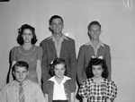 Diamond Hill Senior High School, in Fort Worth, Texas, is electing new senior student officers for the class of 1942. Pictured left to right, on the back row are January graduates Mary Katherine Loven, Fred Daniels, and Raymond Bullard. On the front row are June graduates Raymond Atherton, Mary Louise Thomas, and Melba Parsley. Miss Loven, president of the senior class, is wearing a dress. Mr. Daniels, vice president, is dressed in a button-up shirt and a tweed suit. Mr. Bullard, secretary, is wearing a collared shirt and a blazer. Mr. Atherton is the president of the June class. He is wearing a striped shirt and a necktie. Miss Thomas, vice president, is wearing a collared shirt and a short-sleeve sweater. Miss Parsley, secretary, is wearing a checkered dress.