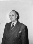 Shaw employees, J. S. Anderson. Man wearing glasses in a double-breasted striped suit, with a striped tie and plaid pocket square.