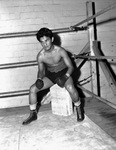 Amateur boxers from all around the area are preparing for the 1942 Golden Gloves District Tournament in Fort Worth, Texas. Jose Andreas is the 1940 state champion in the Flyweight division. He is looking to reclaim the title and is one of the favorites in the division. He is sitting in a corner of the ring, catching his breath during training.
