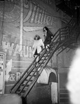 North Fort Worth Flood Scenes. Miss Wanda Yardonoff, leading the way from the top of a building.