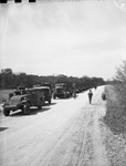 113th Cavalry, horse and mechanized cavalry, passing thorugh Fort Worth. Portions of the convoy as it arrived in Z. Boaz Park and came to a halt.