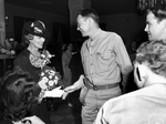Lord and Lady Halifax in Fort Worth. Lady Halifax is shaking hands with Corporal Paul Harden, El Paso, Texas.