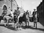 Lord Halifax is riding a multicolored horse. There are a few unidentified men on horseback behind Lord Halifax.