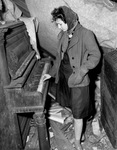 Flood scenes at Crowell, Texas. Ada Jane Magee, 14, looking at piano.