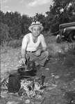 Fishing in Possum Kingdom Lake near. Breckenridge. Dr. B. B. Weldon, cooking his fish.