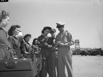 Participating in tool inspection at the Lubbock Air Corps Advanced Training School are (left to right) Misses Neva D. Cypert and Velma Boyd, Mmes A. C. Berryman and Elizabeth Scoggins and Major L. L. Lewis.