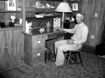 The Fort Worth Star-Telegram is running a feature on some of the most outstanding ranches of Texas. The Halbert Ranch is owned by Mr. and Mrs. R. A. Halbert in Sonora, Texas. Mr. Halbert is president of the Texas Polled Hereford Association. The ranch has been is his family since 1890. Mr. Halbert is shown sitting at a desk in the den of his home. He is dressed in a button-up shirt, trousers, and cowboy boots.