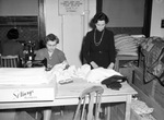 Red Cross workers. Mrs. W. B. Dobson, left, and Mrs. N. E. Buster, sewing.