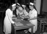 Red Cross workers. Mrs. Caroline Miller registering at the close of work day. Left to right, MRs. B. W. Adams, Mrs. B. W. Adams, Mrs. J. H. Golladay and MRs. Ed Zilkey.