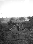 German War prisoners at the Madill Provisional Internment Camp. Shots of the German War Prisioners clearing the Oklahoma lowlands, eating, at the water barrels, going to and from work, cooking, filing into the mess hall. Individuals in these shots are not identified.