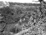 German War prisoners at the Madill Provisional Internment Camp. Shots of the German War Prisioners clearing the Oklahoma lowlands, eating, at the water barrels, going to and from work, cooking, filing into the mess hall. Individuals in these shots are not identified.